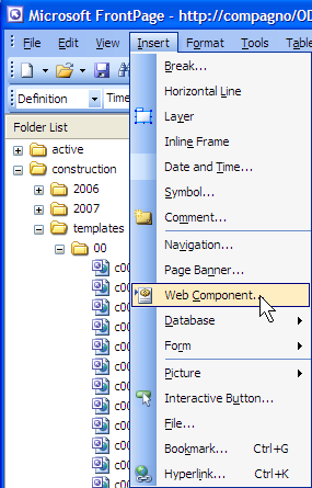 Using Microsoft Office FrontPage 2003, the correct ClustrMap images may be inserted into any number of site pages. Insertion is by using the FrontPage extensions "Include Page" web component. The Include Page provides a single-cell table element that accomplishes four purposes: