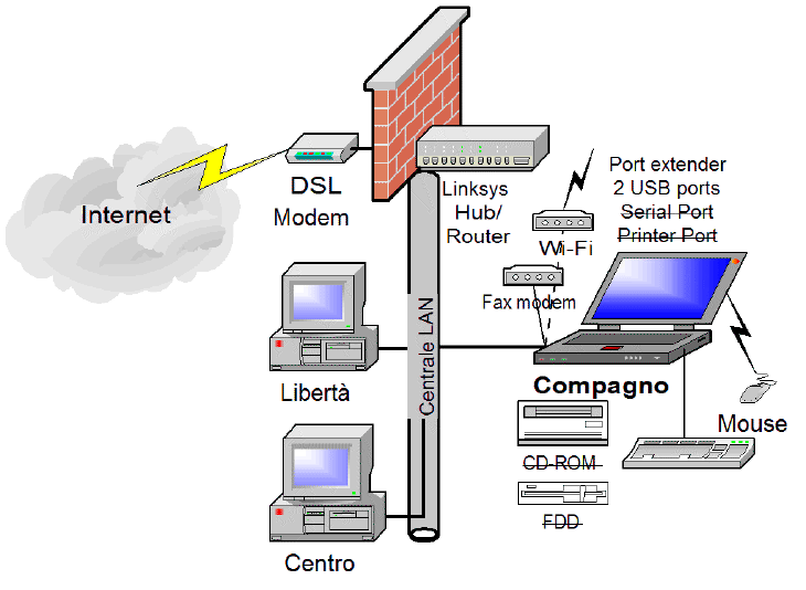 The following diagram provides the external topology of the non-physical attack surface of the Compagno system on the Centrale SOHO network.