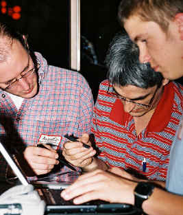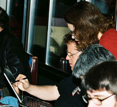 When Scoble announces geek dinners, he picks public places to congregate, saying that we should look for people who are Dilbert-equipped. It is usually not the case, at least for early arrivals. This time, the arriving wave brought many toys and anyone who came later had no trouble picking us out. The electronic scene was dominated by Tablet PCs and the latest Nintendo WiFi hand-held game sets. Tablets seem to be everywhere, and it is nice to see how they are used collaboratively by creating shared-network overlays and then working on shared documents. There were a number of Microsoft people in town for courses and, instead of having their own geek dinner the same night in Bellevue, a group came to the meet-up along with Robert Scoble, who'd promised to show Jacqueline Passey a Tablet PC. There were some great children and parents among and accompanying the geeks. It was a great evening. As usual, I left too soon. I get to the place where I feel that I've overstayed my welcome and it is time to catch that next bus. There's something that it would be good for me to get over. Anita has posted a nice summary of the event. |